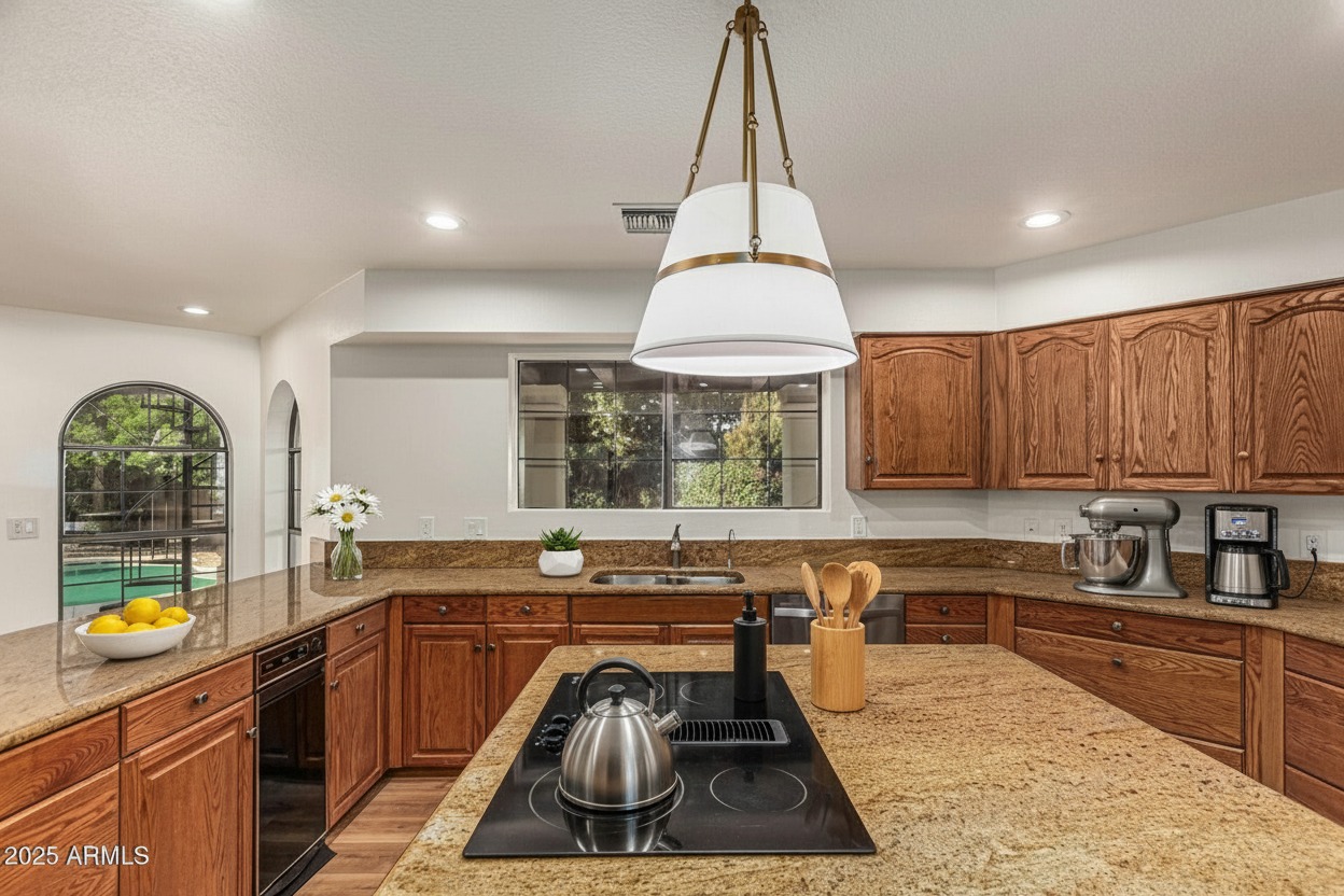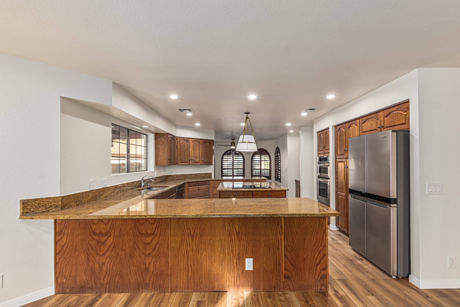 Arizona living shines brightest outdoors, and this backyard delivers. The large covered patio provides shade and outdoor dining space, while the sparkling pool and lush, mature landscaping make the yard feel like a private resort. With over half an acre to work with, there’s room for kids to play, pets to roam, and adults to relax — all at the same time.