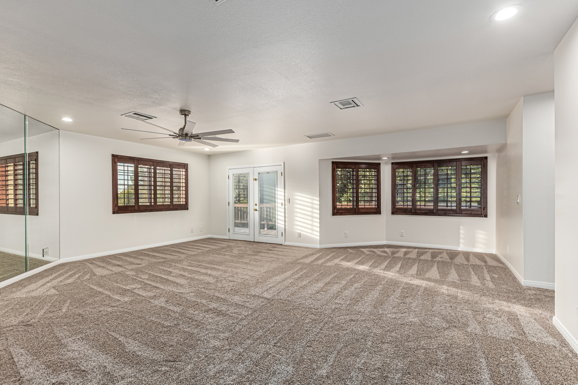 The additional bedrooms are all incredibly spacious, each with their own walk-in closets. A Jack & Jill bathroom upstairs provides convenience and functionality for kids or guests. The fourth bedroom is downstairs, with its own full bathroom right nearby.